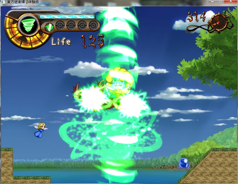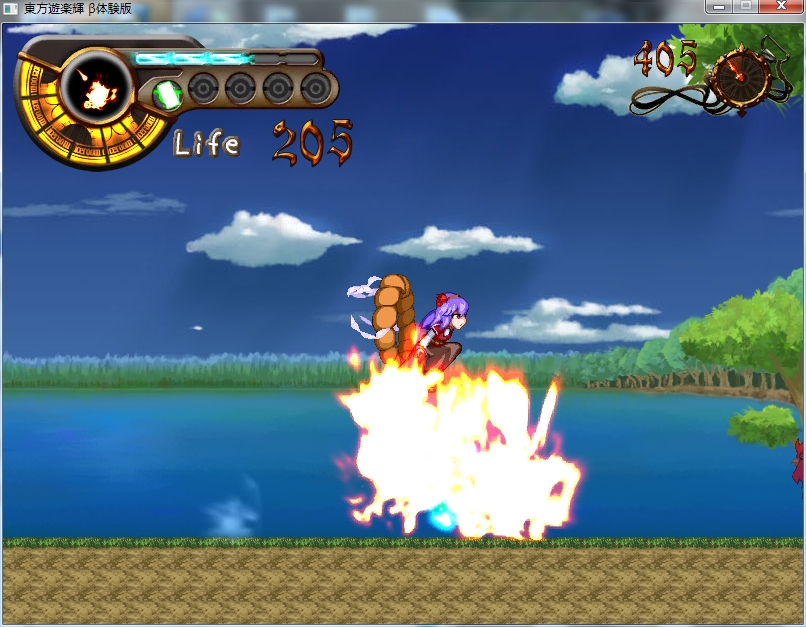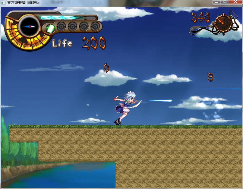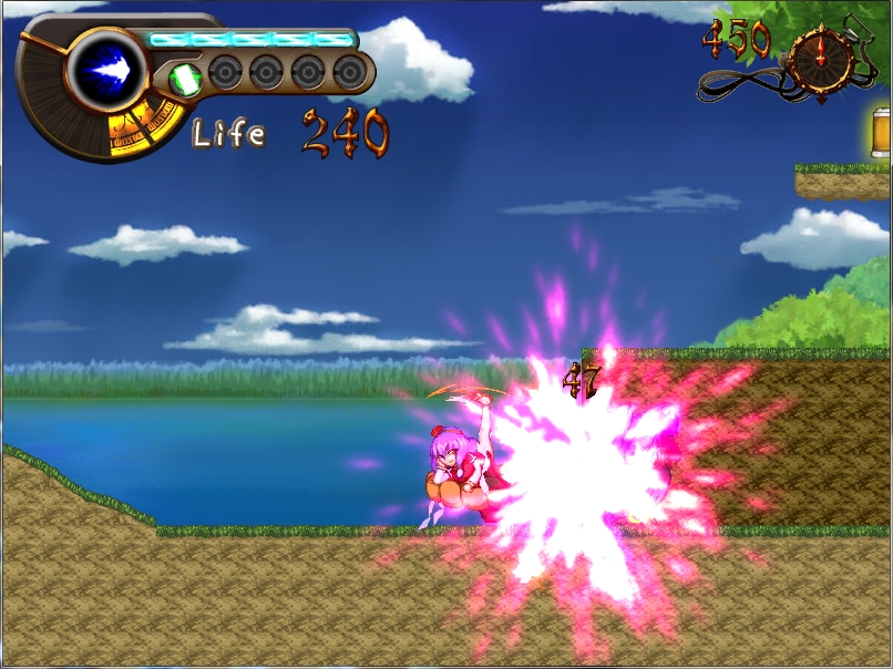 というわけで今日はダッシュです。空走ったりも出来ますよー。遊楽輝ではロックマ○Xのようにダッシュ、エアダッシュでの移動が可能です。